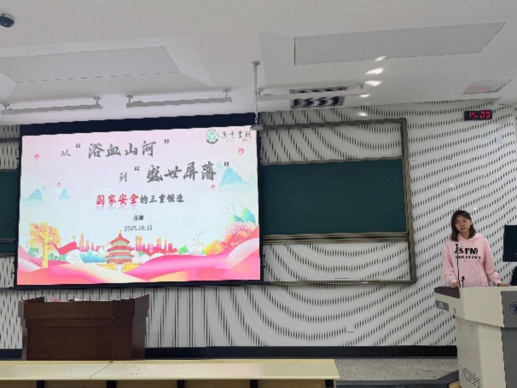 崇实书院前锋宣讲团环绕“教育”展开活泼宣讲。董卿以《从“浴血江山”到“盛世屏藩”:的三沉锻制》为题,回首自抗日和平以来我事平安的成长过程,通过一件件军事沉器的展现,激发同窗们的爱国情怀取平易近族骄傲感。宣讲还涵盖边防、海洋、、经济等平安内容,展示中国带领下的全面巩固。