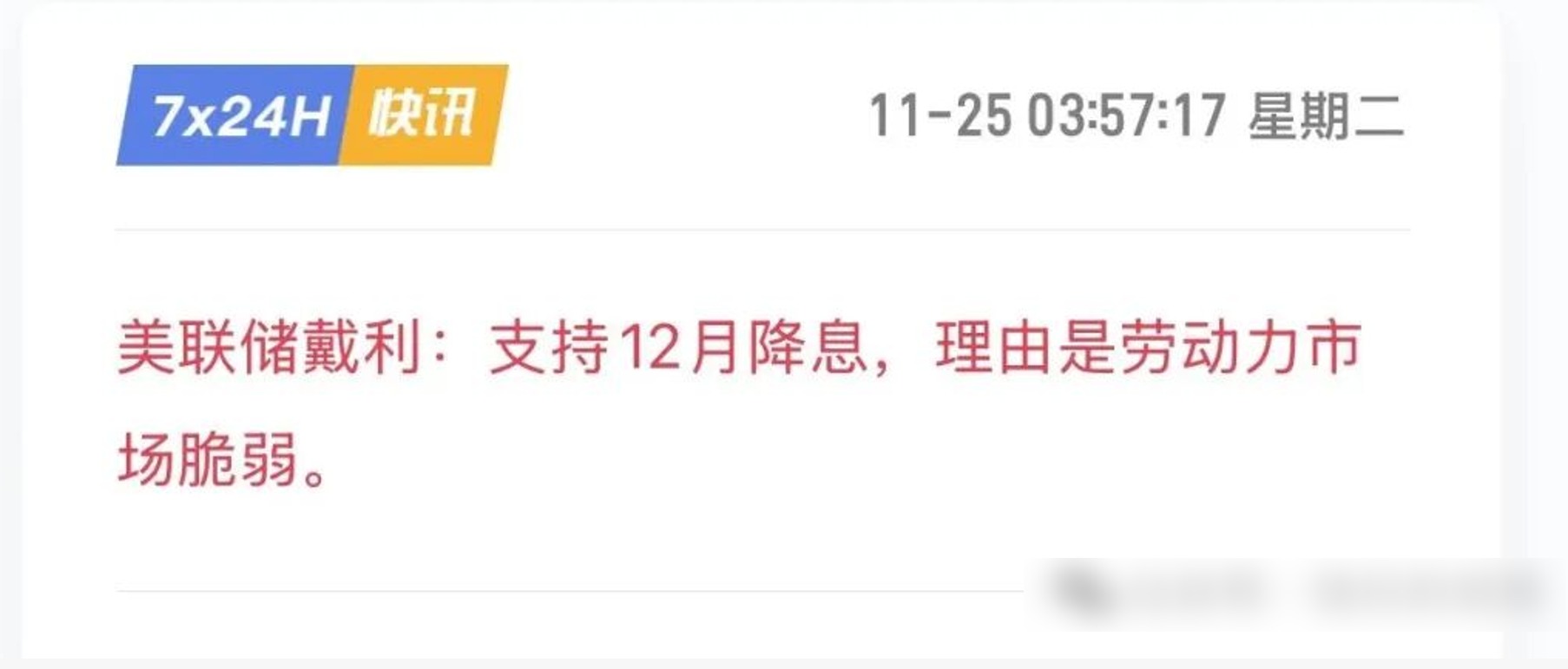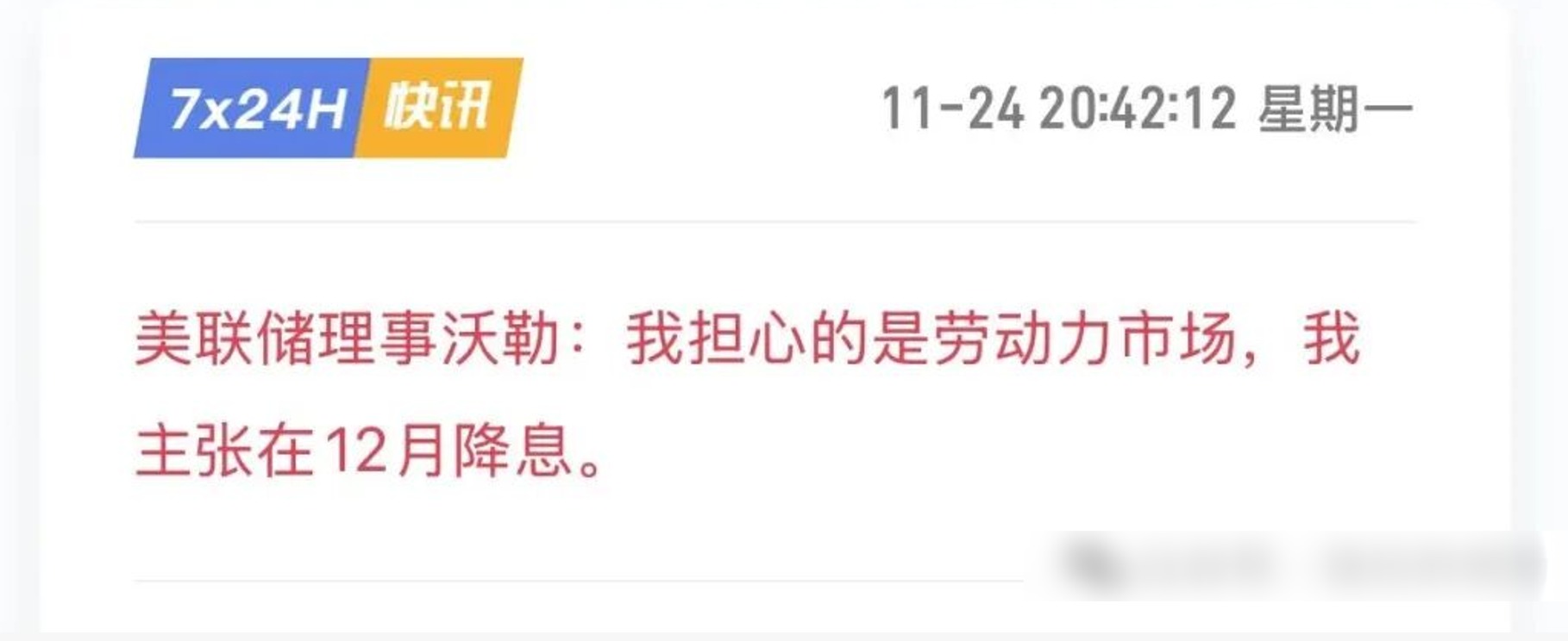 500)this。width=500 align=center hspace=10 vspace=10 rel=nofollow/从上周五一曲到今天为止,美联储风向大变,一众官员出来支撑十二月份降息。起首是上周五,纽约联储威廉姆斯,他俄然具有了投票权,而且支撑12月份降息,之后是理事米兰支撑降息;今天,再一次有官员出来讲话,美联储理事沃勒,他同样支撑十二月份降息;同时,联储戴利,他也是比力支撑12月份降息。